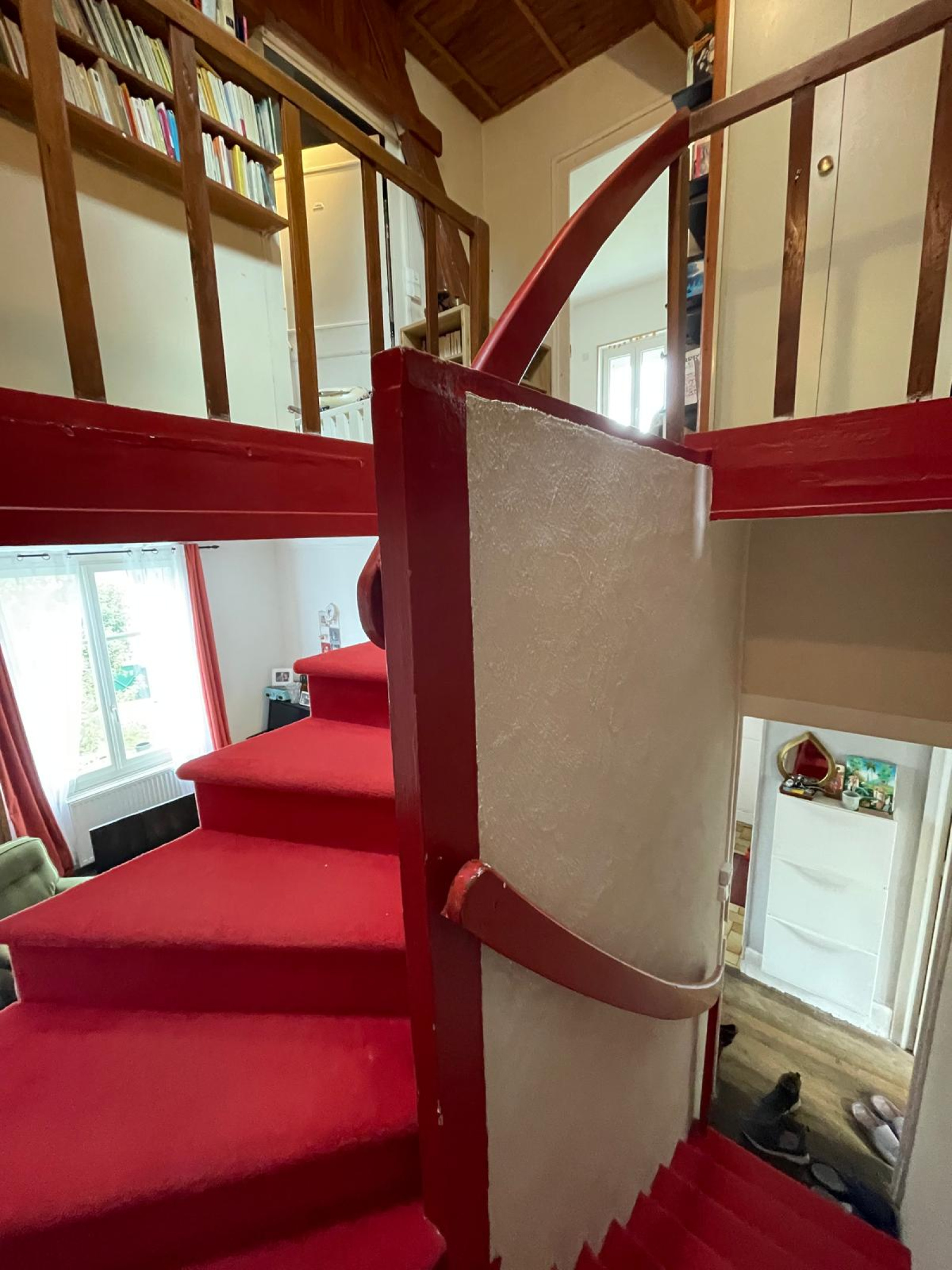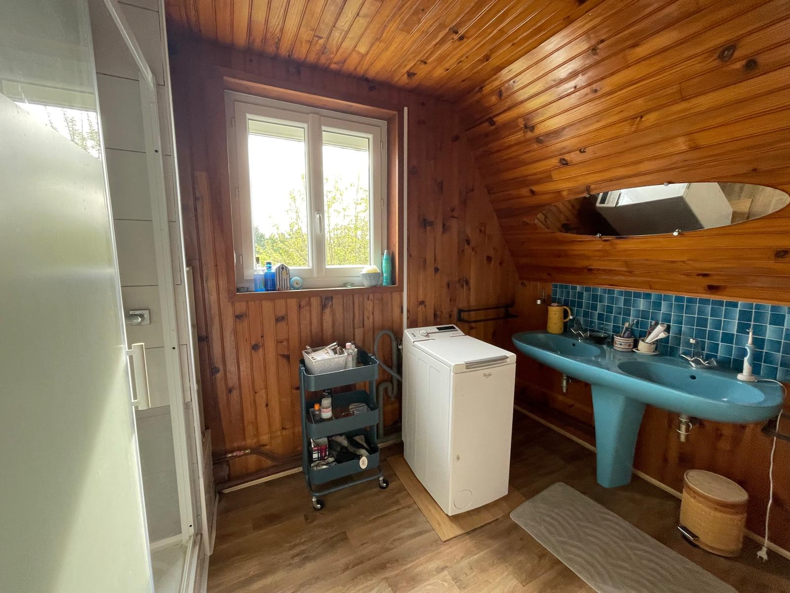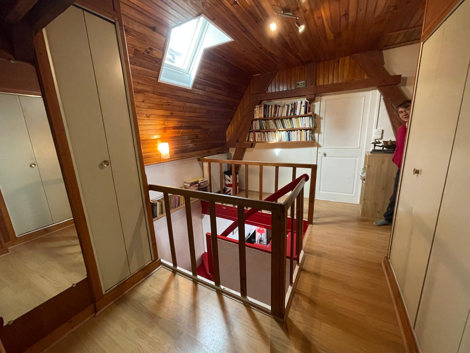 L'étage dessert un palier avec rangements, deux chambres et une salle d'eau.