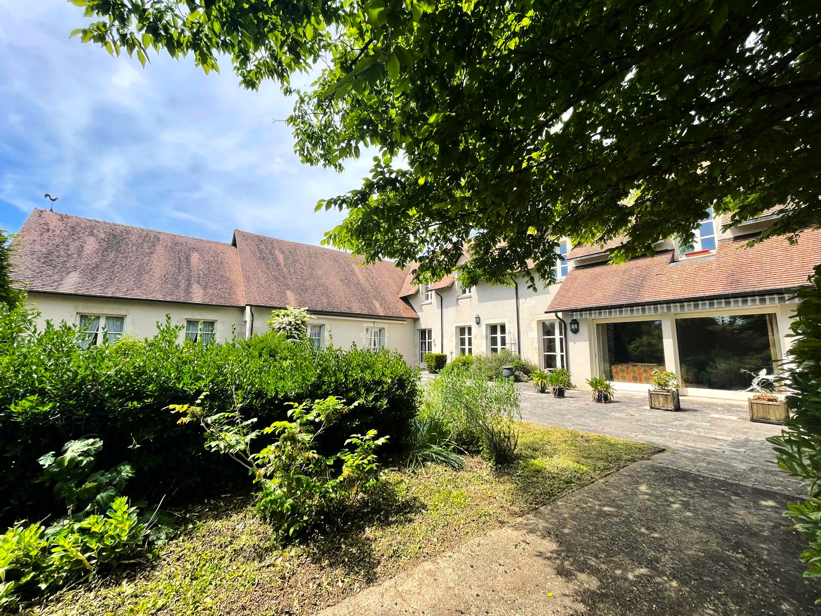 Orientée sur son parc arboré d'environ 1ha2, cette jolie bâtisse configurée en "L" a entièrement été rénovée et agrandie dans les années 1995's par un architecte local. Cette maison baignée de lumière offre environ 400m² habitables ainsi que de grands greniers et un espace garage de 65m².