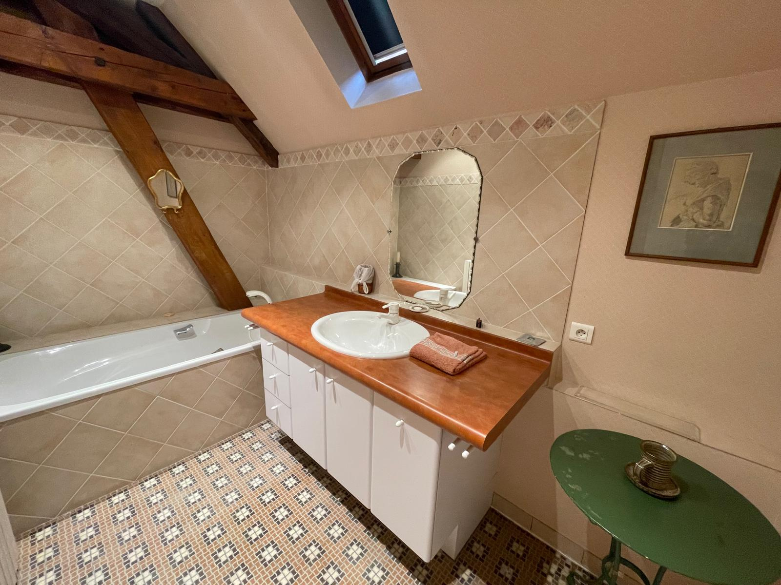 L'escalier aérien a été conçu par un ferronnier local, desservant une grande pièce loisirs, deux chambres, wc, une salle d'eau, une salle de bains, vaste chambre parentale avec salle de bains et wc privatifs. Nombreux rangements.