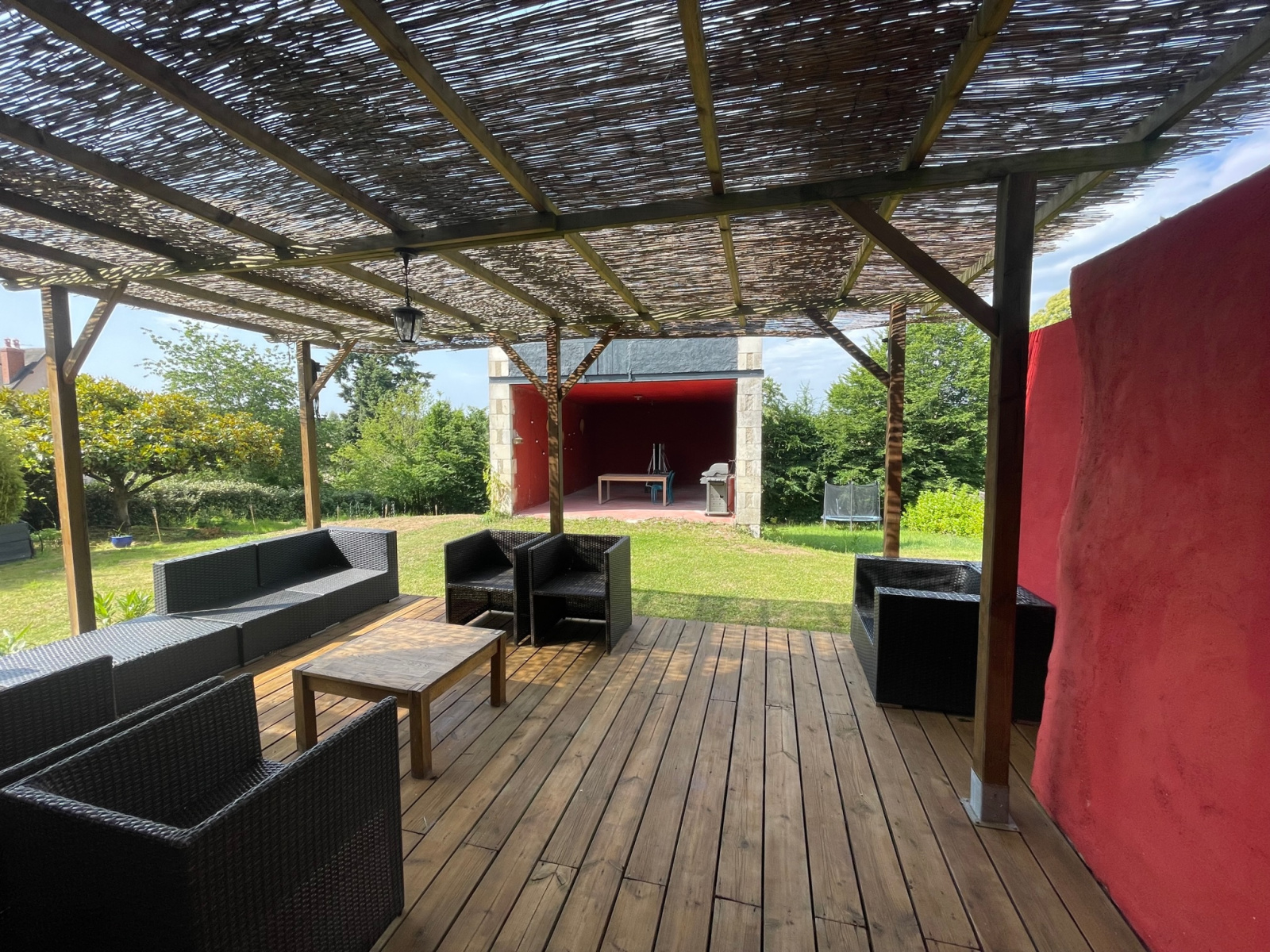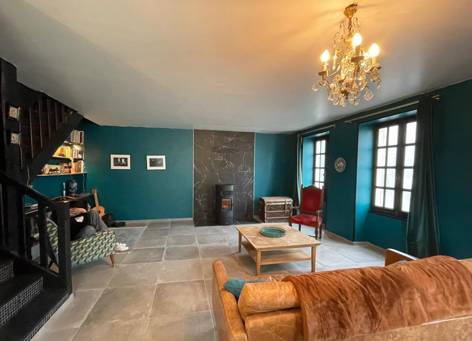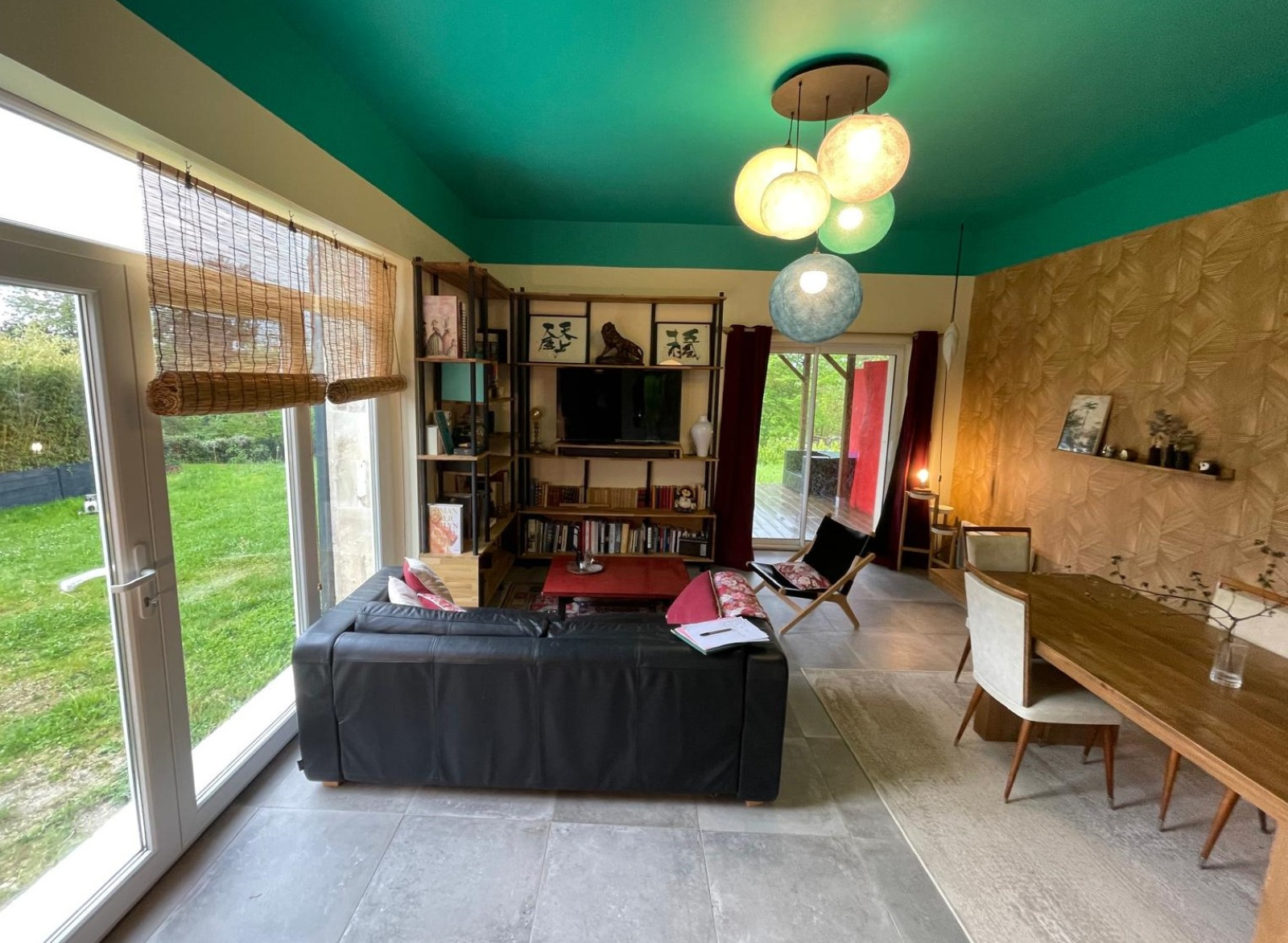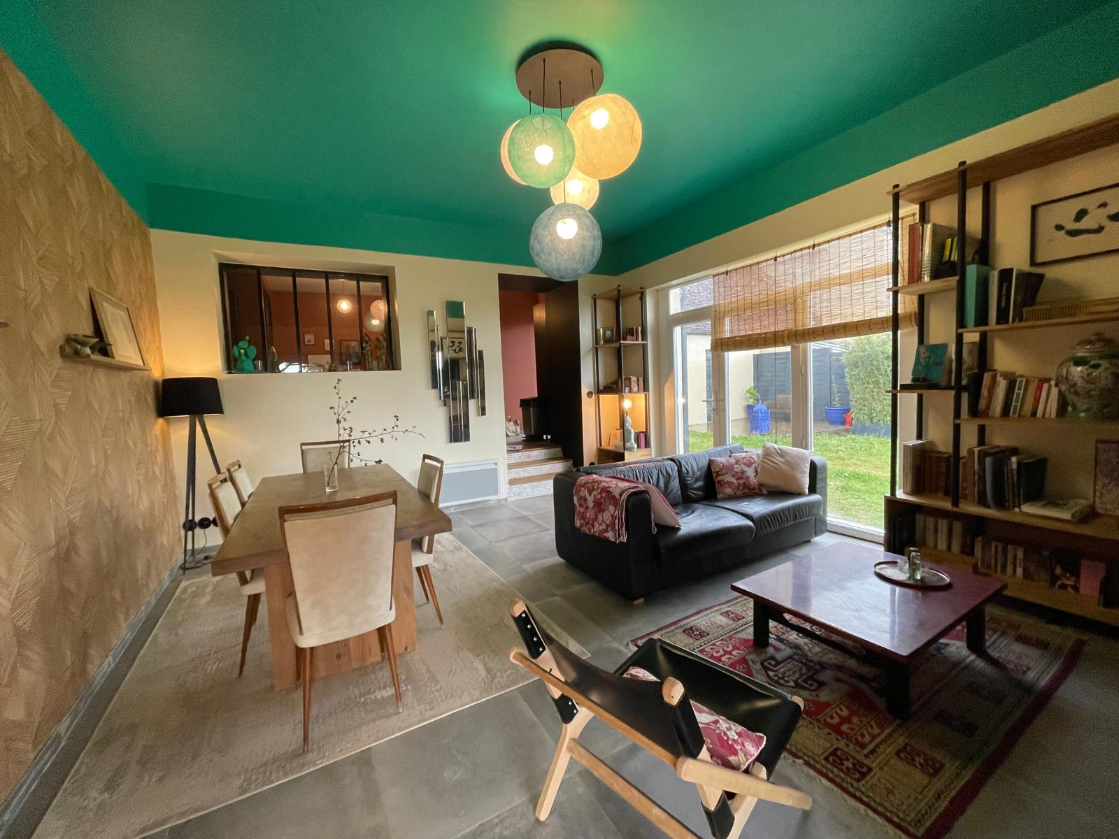Baignée de lumière, cette maison offre de beaux volumes sur environ 165m² habitables : une jolie entrée avec four à pain permet d'accéder à un agréable salon de 34m² avec poêle à granulés, un espace cuisine desservant la salle à manger / espace bibliothèque et la terrasse extérieure côté jardin.
